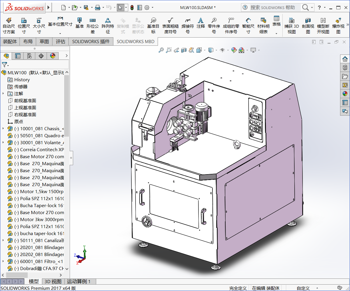 MLW100湿式圆管抛光机 SW设计 3D模型SolidWorks三维设计图(ID:2475292)