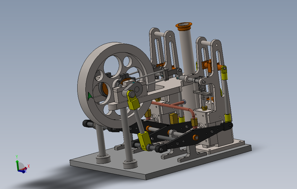 双缸双面梁蒸汽机3D数模图纸Solidworks设计附工程图(ID:249774)