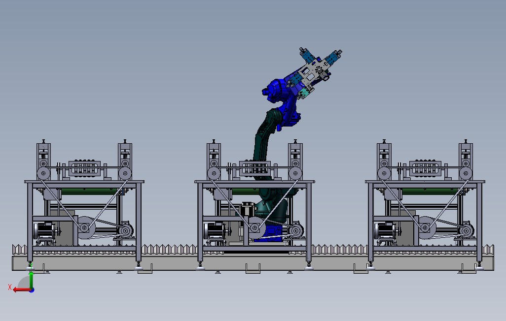 本模型包括开卷机设备,皮带路结构,移动取料机械手,开卷机是金属板材校平的专用设备,机体为焊接箱形结构,变频调速电机通过齿轮箱减速后驱动卷筒轴为开卷机提供主动力。开卷机是金属板材校平的专用设备,用于校平线钢板、不平整板可根据相关配置组成开卷、校平、剪切生产线和其它板材制品生产线。适用于机械、车辆、金属制品家用电器、钢构、装饰等行业。开卷机是焊管生产线中必不可少的重要设备之一,它的作用一个是通过涨紧钢卷内孔来支撑住钢卷; 另一个是通过旋转在直头机的配合下将钢带头部送入矫平机。 因此开卷机性能的好坏对整个生产线的影响至关重要。 在多年的设计实践中,对开卷机结构进行了不断地优化改进,使开卷机的性能得到了提高。本模型建模精巧,可供大家探讨学习!