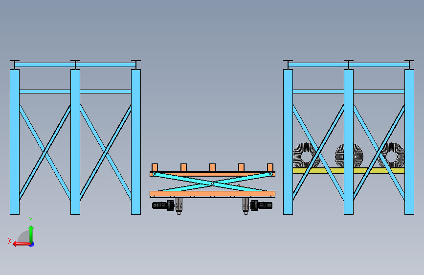 立体仓库主体采用多层立体货架结构,通过科学规划垂直空间实现钢筋卷材的高密度存储;升降码垛车作为立体仓库的关键作业设备,集升降、搬运、码垛功能于一体,专为钢筋卷材的装卸与存取设计;其搭载液压升降系统,可轻松实现不同层高货架间的垂直运输。