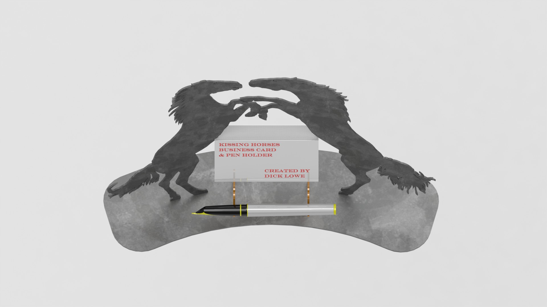 “亲吻马匹”名片夹,名片自然拼图,3D金属工艺品设计。(ID:2592605)