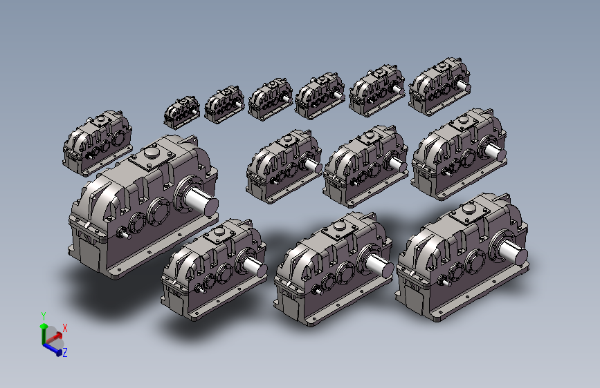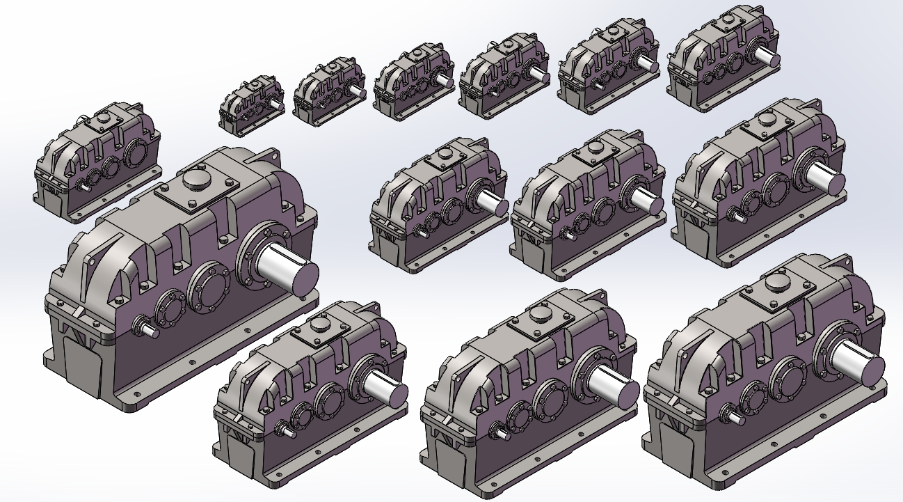 ZSY三级圆柱齿轮减速机3D模型,型号:ZSY,三级 ,共计:14款,型号:减速机型号 :160、180、200、224、250、280、315、355、400、450、500/560、630/710