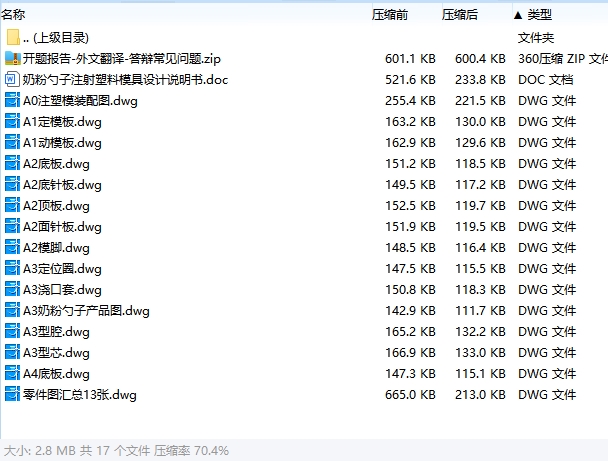 | 16 | X100简介-奶粉勺子的注射塑料模具设计-注塑模、一模两腔含13张CAD图.pdf | 1.35M |
