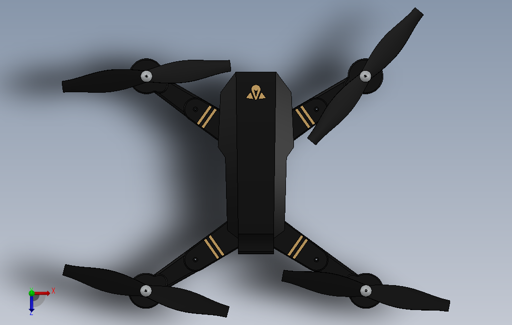 这是一款小型无人机,四轴无人机,适合航拍,模型建立时绘制了较多细节,比较详细。solidworks 2018 版本。欢迎朋友下载。