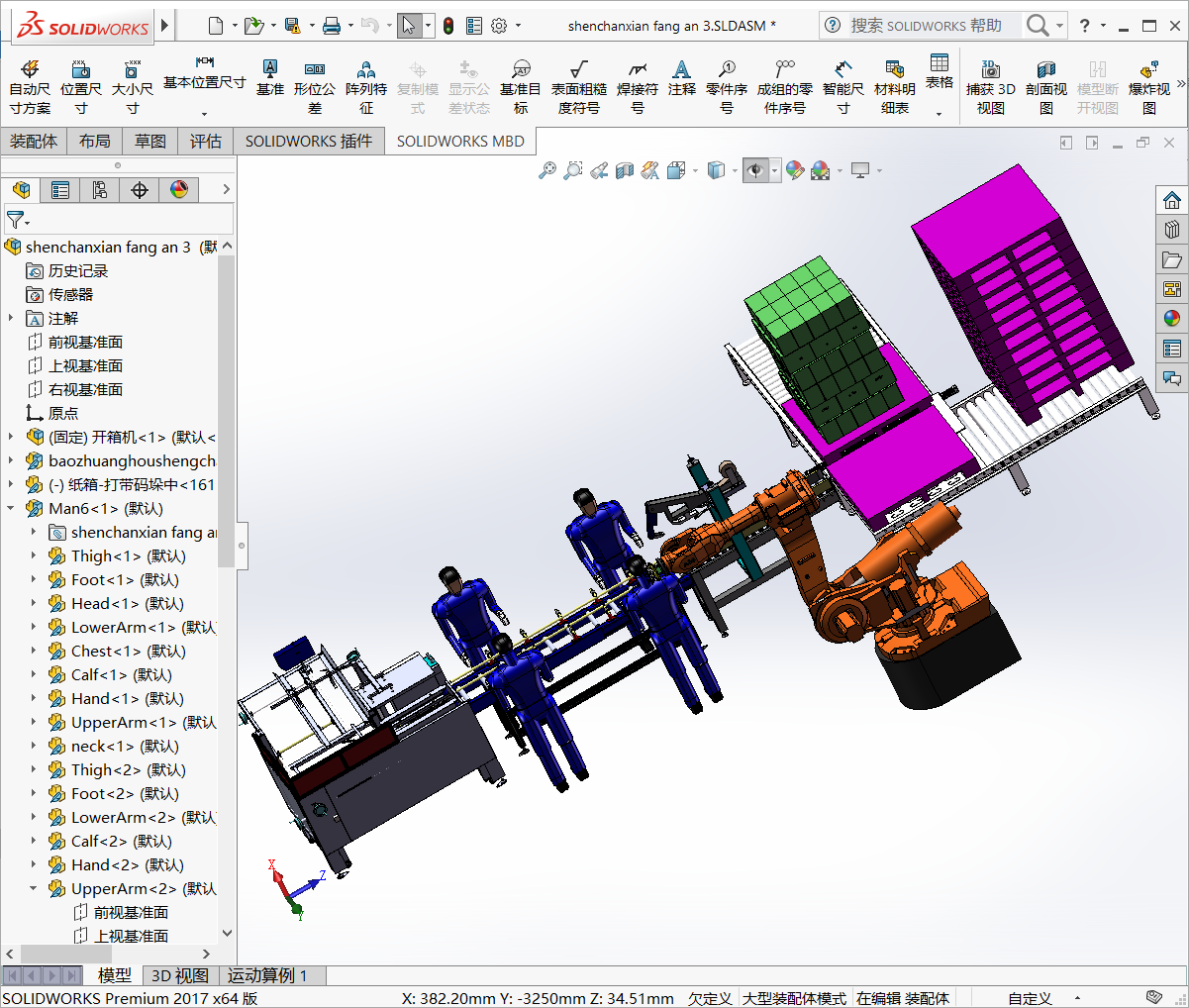 全自动纸箱码垛流水线(机器人码垛装箱机) 3D模型SolidWorks三维设计图(ID:2719812)