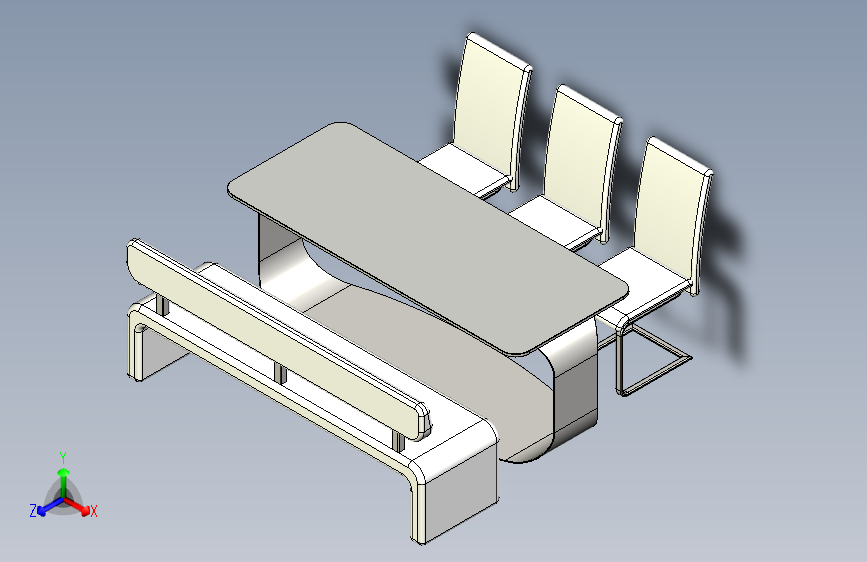 一套三张皮椅、一条长凳和一张餐桌(ID:2726778)