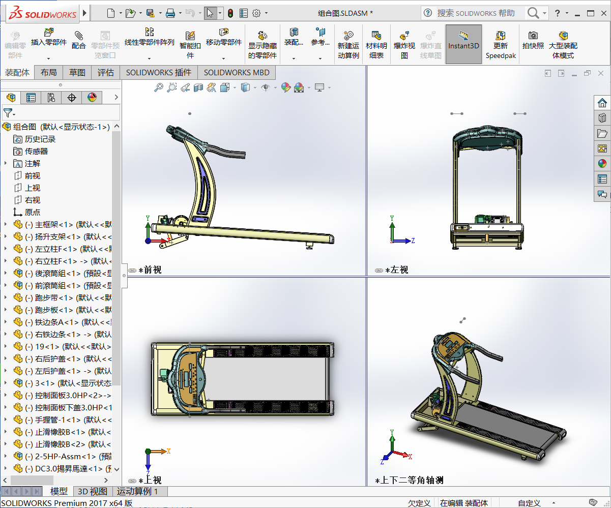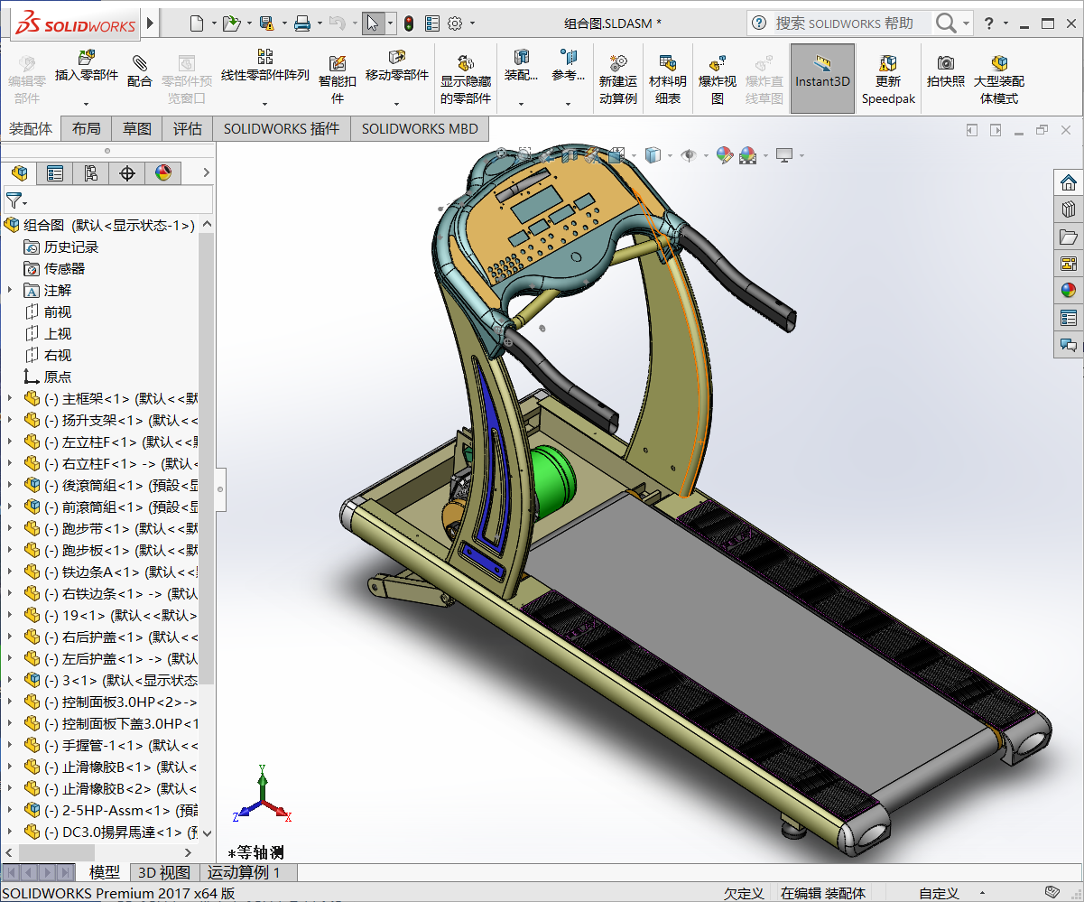 家用跑步机3D模型SolidWorks三维设计图(ID:2730791)