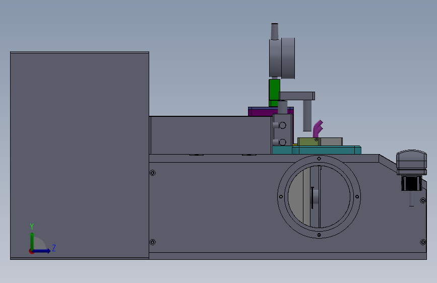 切割设备3D模型,此切割设备用于产品切割操作,由外壳防护罩、夹紧工装、气动元件、运动机构、测量百分表、切割片等组成,用于产品切割操作,提高生产效率。