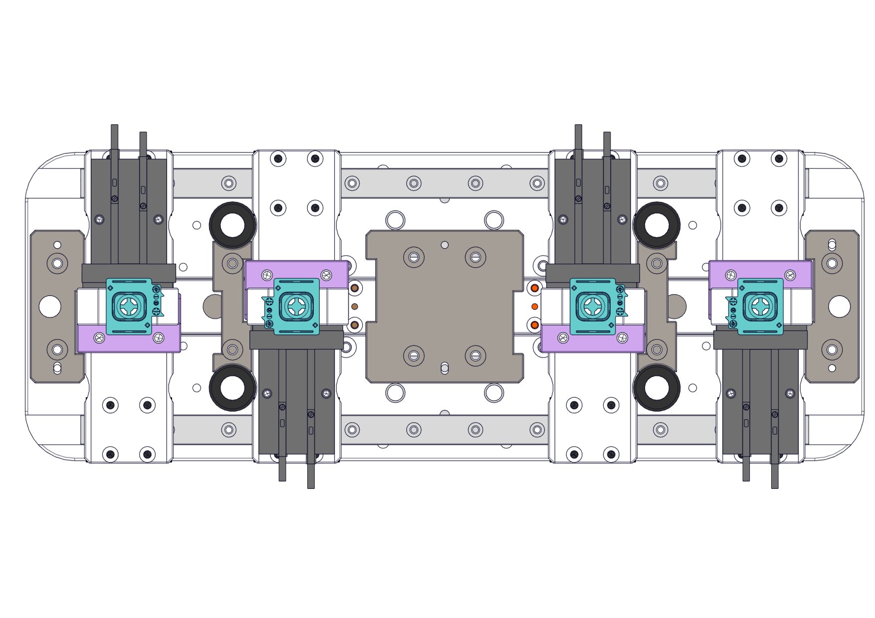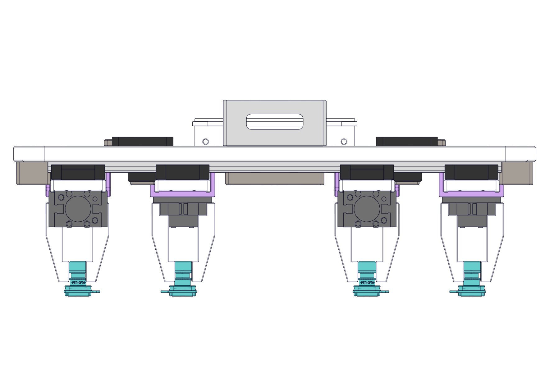 基于气缸的变距移栽机构是一种利用气缸作为动力源,实现将工件(如电子元件、瓶盖、小型零件等)从一个位置抓取、移动,并在放置时改变其之间中心距的自动化装置。移栽:指“移植和栽种”,在工业自动化中,特指将工件从一个工位搬运到另一个工位的动作。变距:指在移栽过程中,机构能够主动改变所抓取工件之间的中心距离。这是该机构的核心功能。气缸驱动:以压缩空气为动力,通过气缸的直线运动来提供机构所需的力量和动作。简单来说,它是一个用气动方式实现“抓取-移动-改变间距-放置” 一系列功能的机械系统。