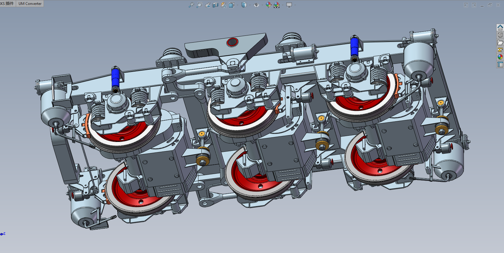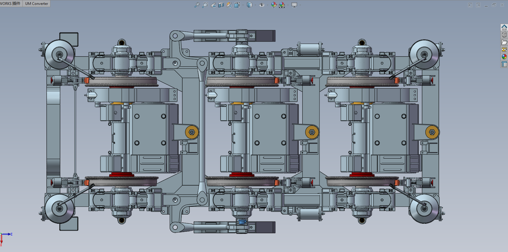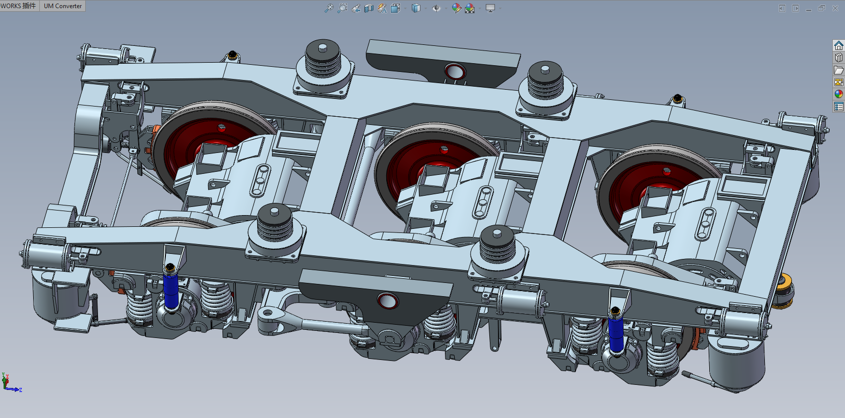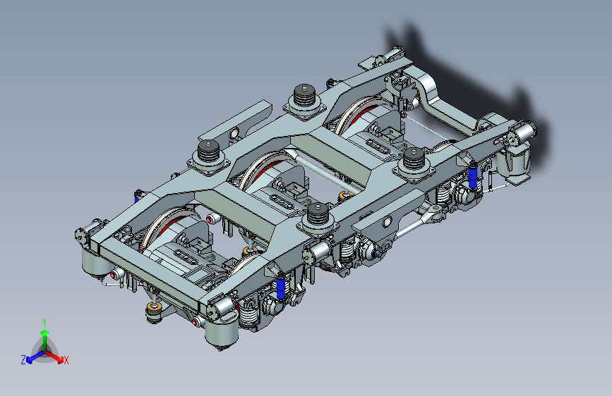DF4B型内燃机车转向架,采用直流传动,C0-C0型轴式,模型文件为STEP,不包含建模参数,可以在模型基础上编辑修改,适合于制作动画,教学模型,课设等