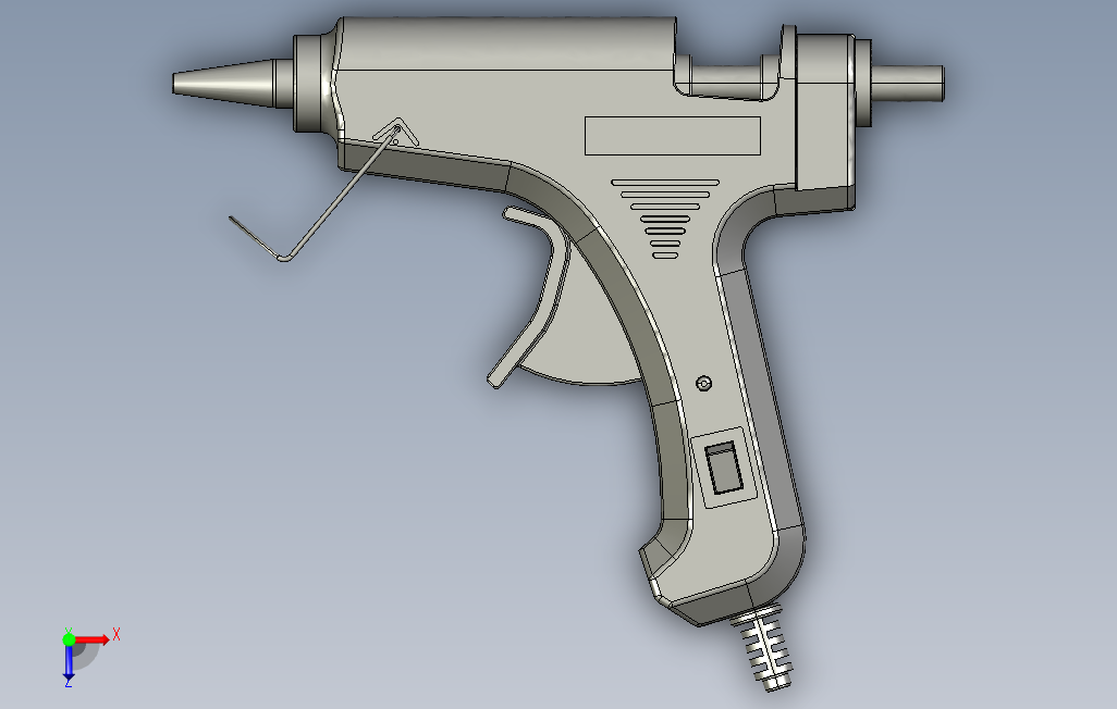 热熔胶枪是一种装修工具,广泛用于电子厂、食品厂、包装厂、等热熔胶条黏结产品。STP格式文件,Solidworks等软件都能打开。欢迎朋友下载。
