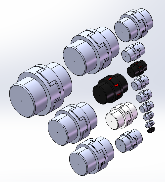 星型联轴器3D模型,型号: XL系列,共计: 16款,弹性体材质为聚氨酯,硬度为95/98shA。工作温度:-40℃~110℃,本联轴器用于较高振动的、高速、高精度的转运系统中,联轴器梅花形