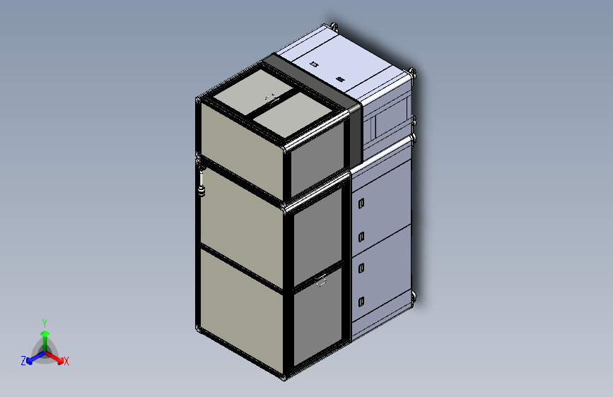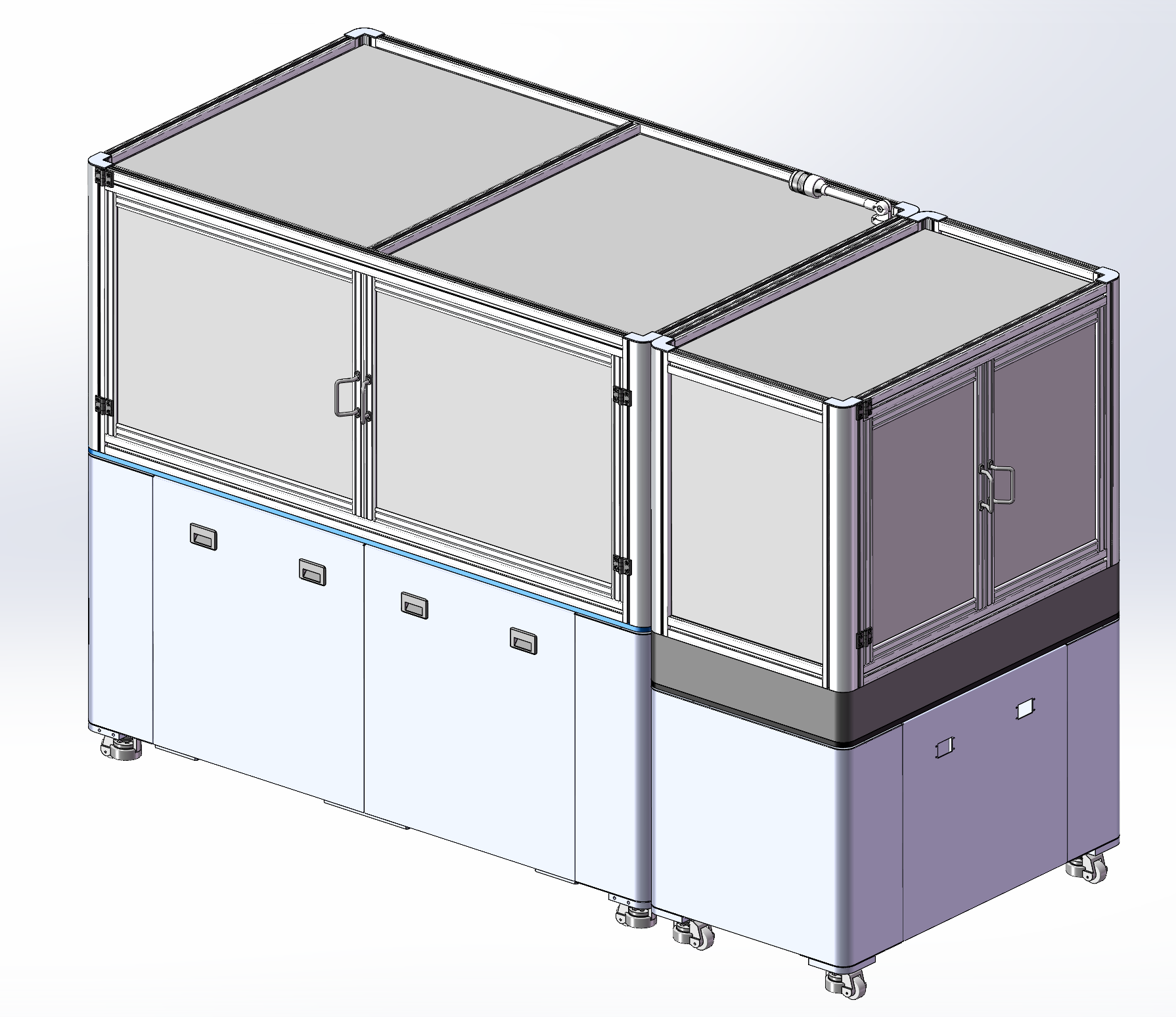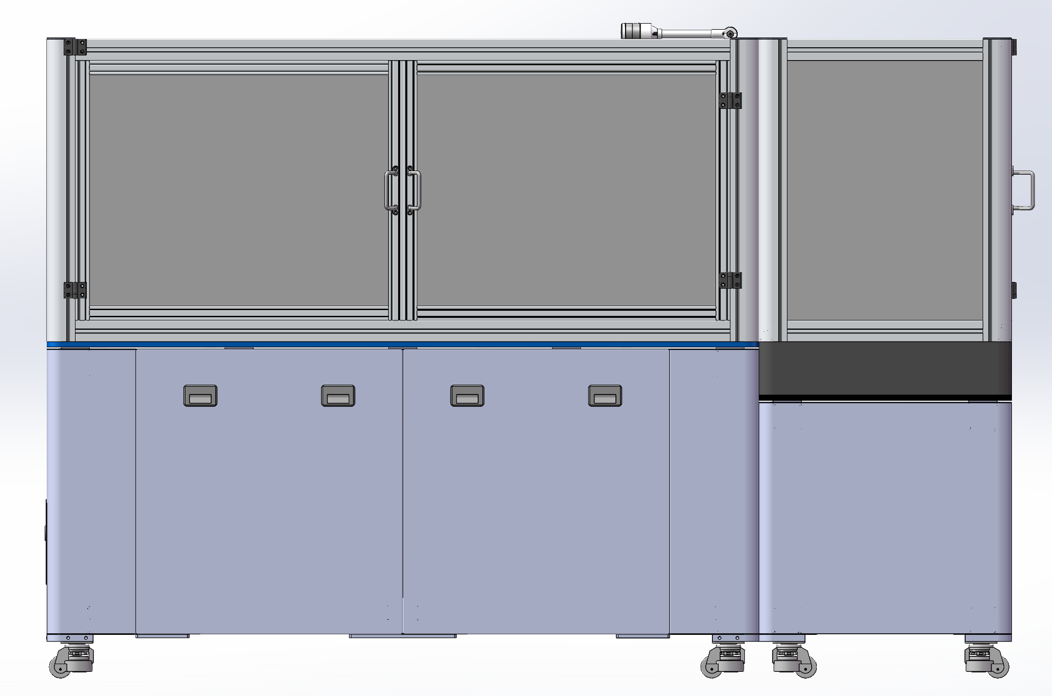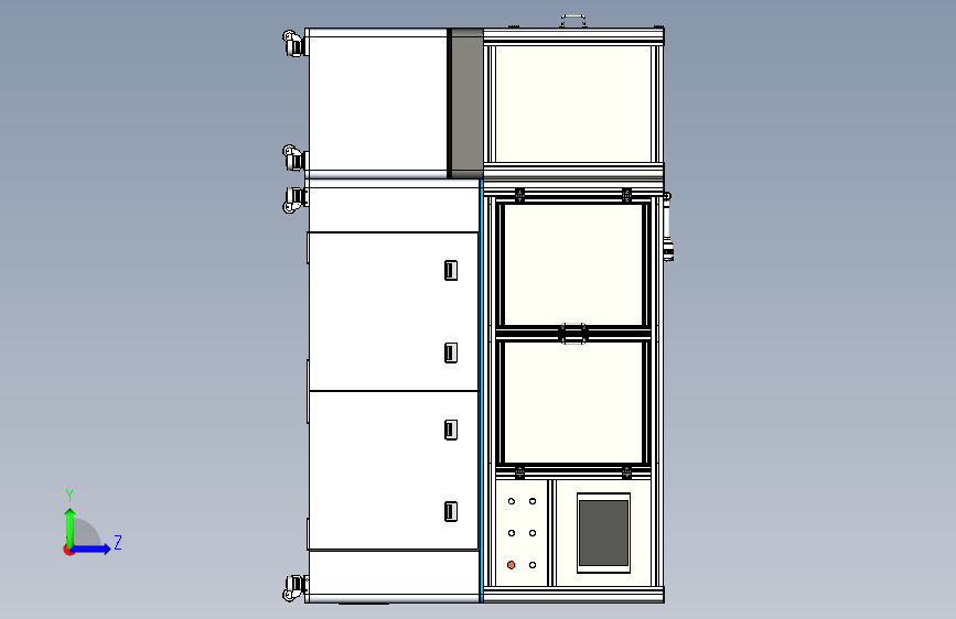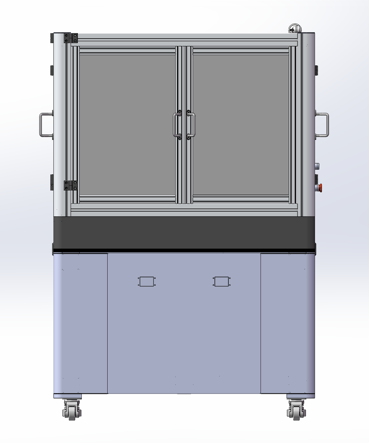 此附件为超高速分拣视觉废拍工作站外壳三维模型,参考现有设备绘制而成,带移动脚轮,双开门、触摸屏以及操作按钮和气动三联件等,成熟设备,结构详细,欢迎下载