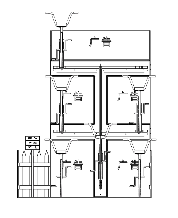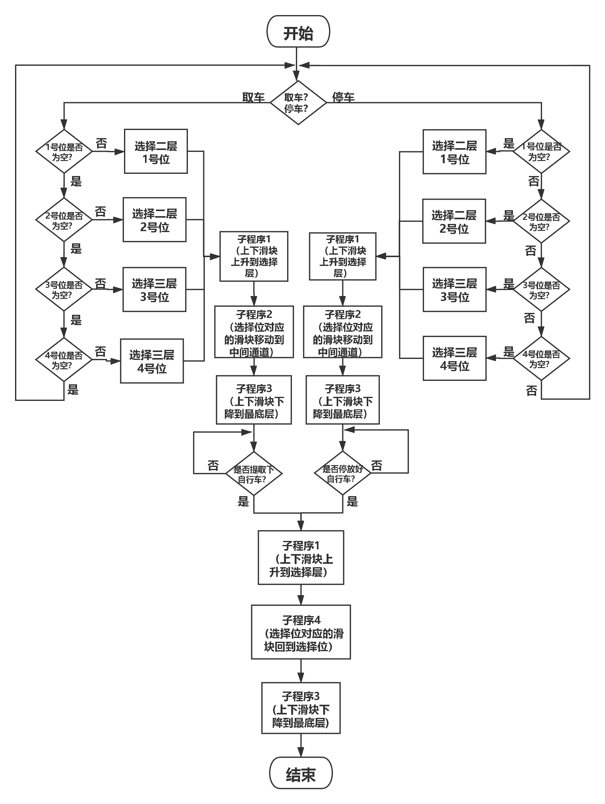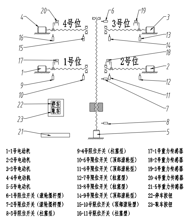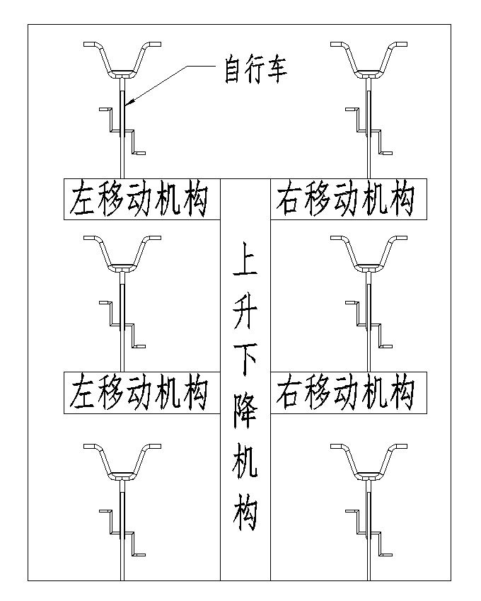 该设计为智能自行车停车位。随着共享单车的普及,自行车乱停乱放的现象日益加重,导致自行车分散的占用了公共场地,极大的影响了市容市貌,浪费了公共资源。该设计采用了一种小规模集中立体停放自行车的形式来解决这些问题。现有的停放方式是直接把自行车停放在路面上,不仅浪费公共场地,还阻碍行人。设计采用PLC控制,以 5个三相异步电动机提供驱动力,运用了5个丝杆机构来实现自行车在三层的立体空间中停放。该设计实现了智能自动的把自行车停放在三层的立体空间中,从而实现自行车小规模集中立体停放,节约公共空间的目的。
