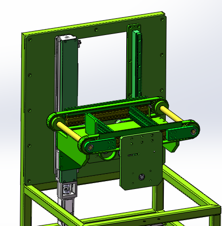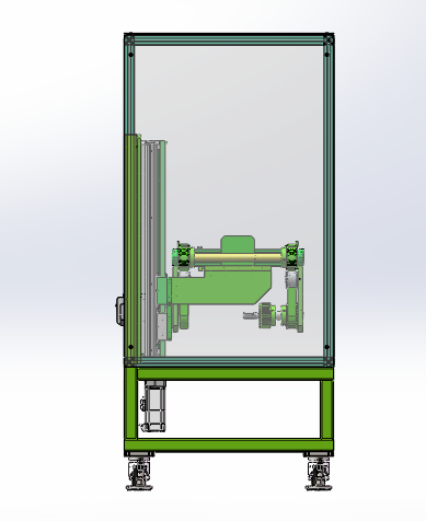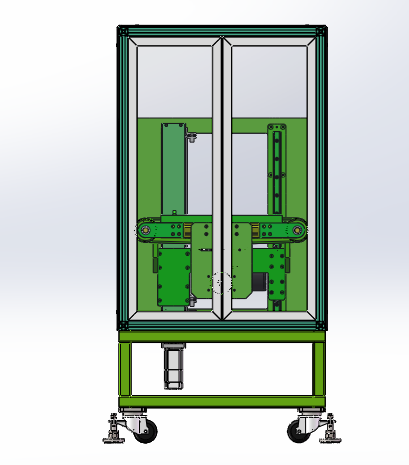 高度位置可自动切换的输送机模型结构图,是用于产品物料过渡接驳用的一款输送机。输送机主要结构及其原理:机架防护罩、电气控制系统、输送皮带和伺服滑台升级系统组成。图纸格式为solidworks2018,欢迎下载参考。