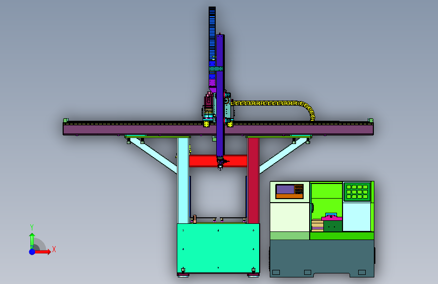 车床集成三轴行走式给料机械手(ID:2992585)