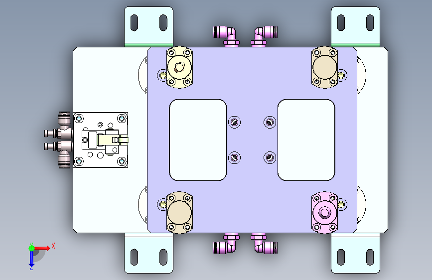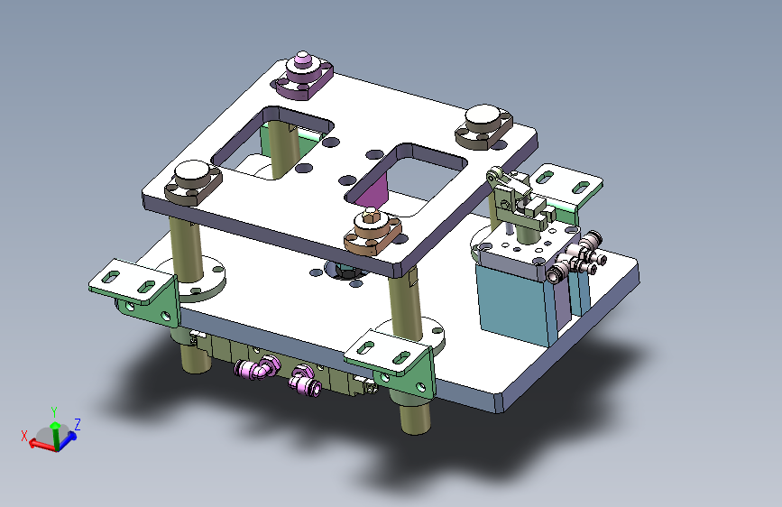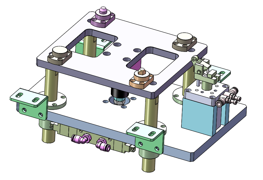 输送线顶升阻挡机构,气缸为动力,自制导向块,此3D经过生产检验,可直接用来加工,包含特征尺寸,方便修改,建议solidworks2018打开,含STEP通用格式,本模型建模精巧,其中有step格式,也有SOLIDWORKS 2018格式,不含参数特征,可以修改。