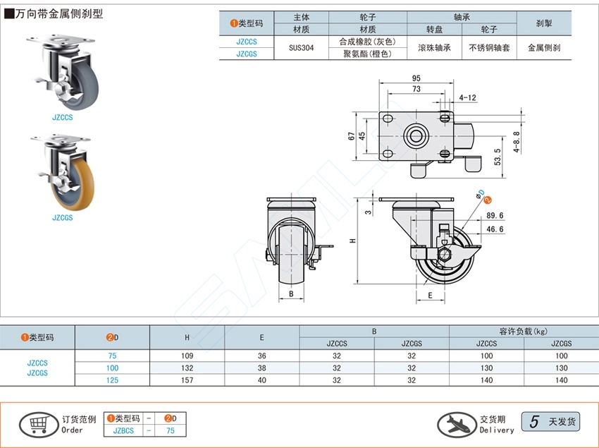 不锈钢中载脚轮-万向金属侧刹型JZCCSJZCGS(ID:303095)