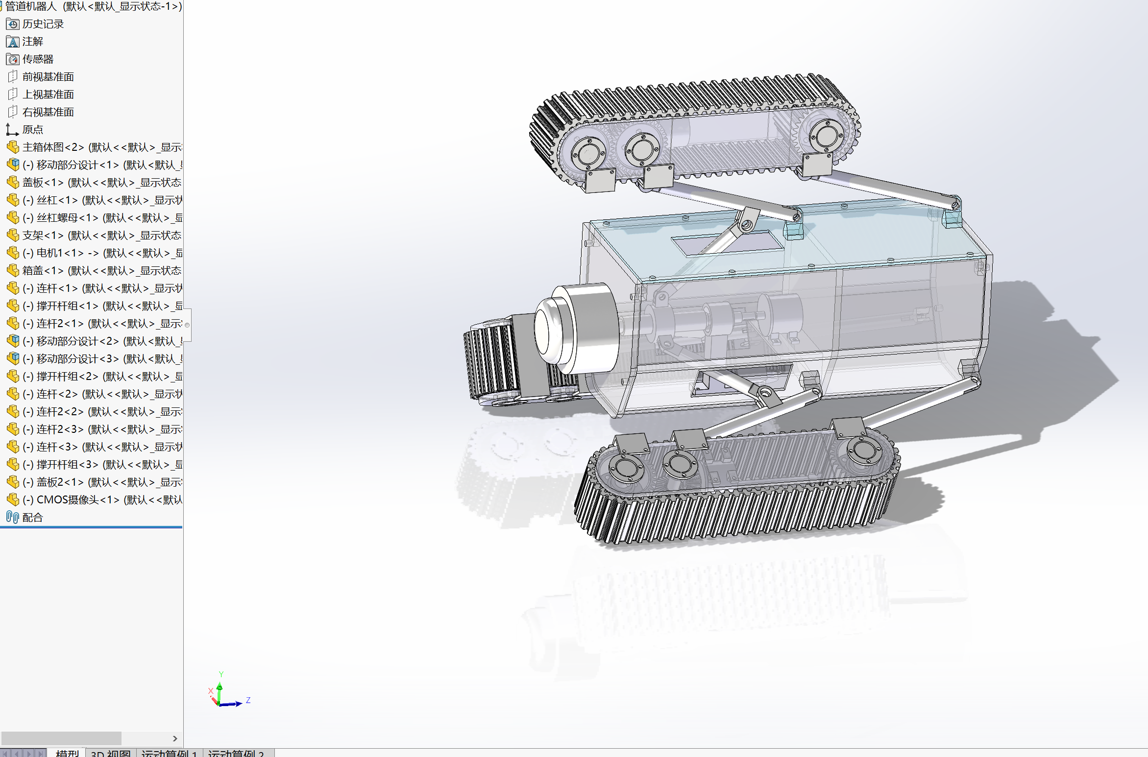 管道机器人结构设计-管道爬行机器人【SW三维建模+CAD图纸+说明】(ID:3042475)