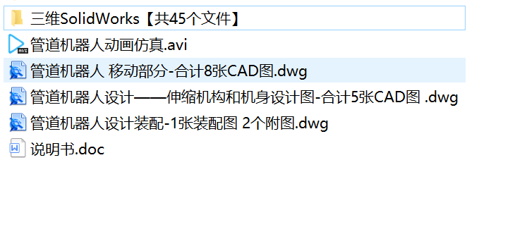| 3 | 管道机器人移动部分-合计8张CAD图.dwg | 1.33M |