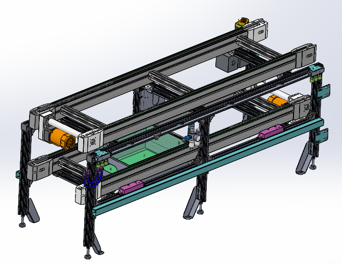 双层倍速链输送线,部分可以编辑,有需要的朋友拿去用哈。 模型尺寸长宽高2000*810*450mm。适合托盘尺寸:宽448到450mm。
