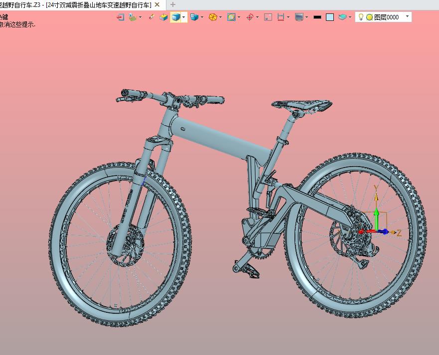 24寸双减震折叠山地车变速越野自行车:采用折叠形式,方便车辆的放置,采用变速设计,结构已经尽量细化,其形态优美曲线流畅,有用到的朋友欢迎下载。谢谢。