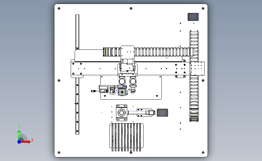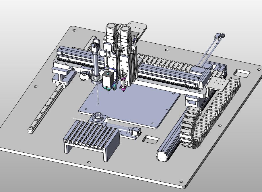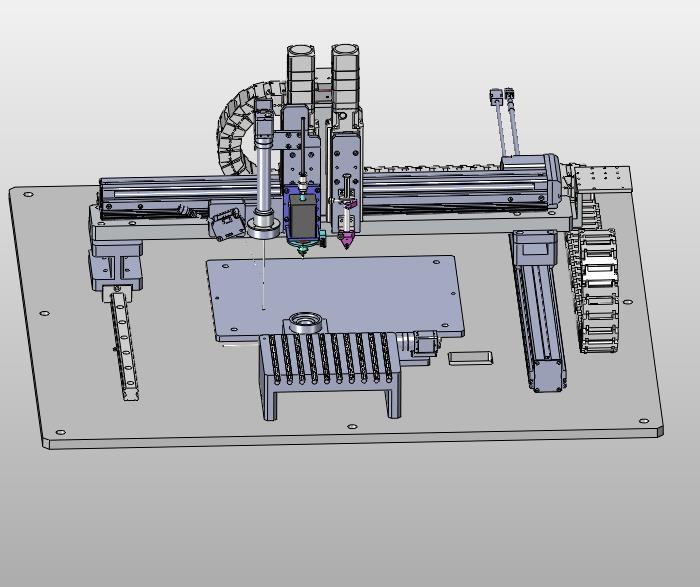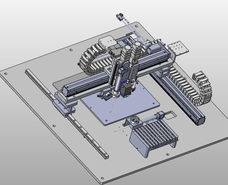 编带元器件电路板自动上料点胶机械手:元器件采用托盘进行上料,通过机械手进行搬运点胶,结构已细化,其形态优美曲线流畅,有用到的朋友欢迎下载。谢谢。