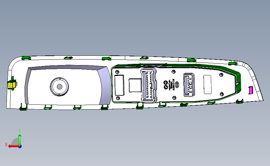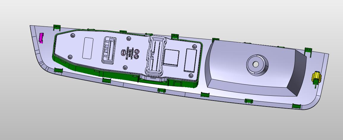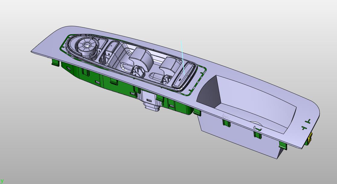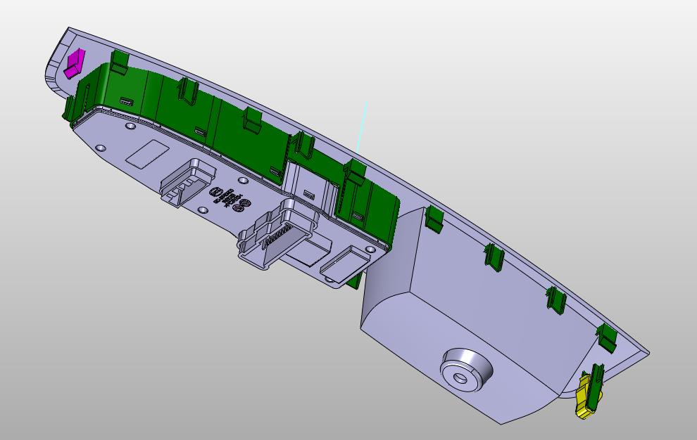 车门门把手操作盒:操作盒采用塑料外壳,通过车门的控制实现玻璃的升降,满足车门开关需求,该模型创建效果逼真,中间数模文档保存,不含参数,可以修改。