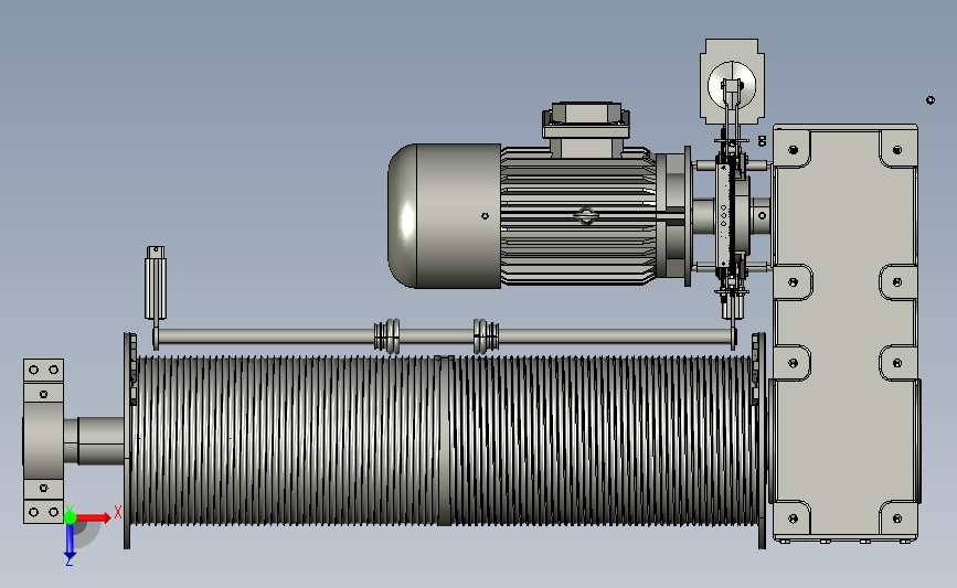 船用绳缆电动收卷装置:前部设置有钢丝绳的卷鼓装置,通过电机进行驱动,显示卷绕,中间格式建模数据更小,可以修改,欢迎各位机械朋友的下载和使用。