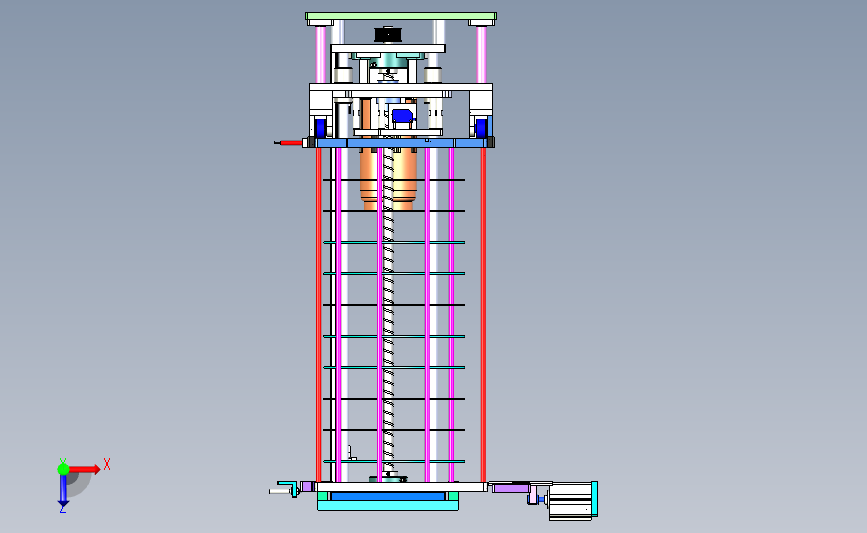 垂直物料料仓升降机码垛机:料仓采用升降的形式进行存储,可以放置大量的物料,通过电机进行升降,图形完整,可以修改,结构新颖,欢迎各位机械朋友的下载和使用。