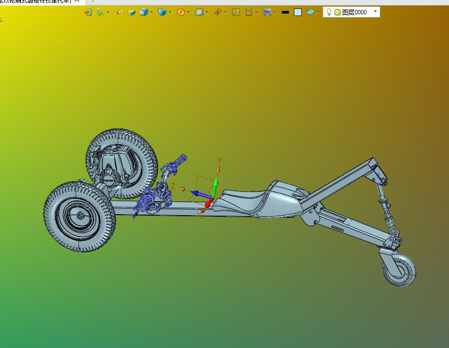 前驱双轮躺式超矮特技摩托车--欢迎各位机械同仁的使用,图纸表达细节比较多,图纸带有实体,中间的格式建模数据更小,结构新颖,不能用于商业使用。