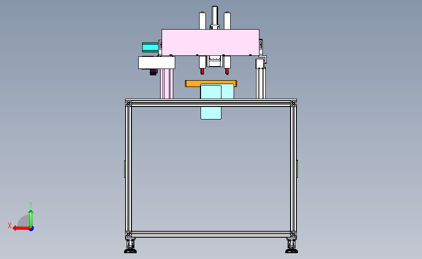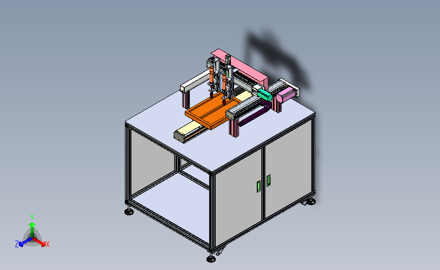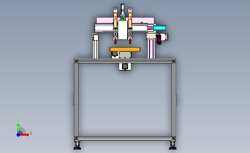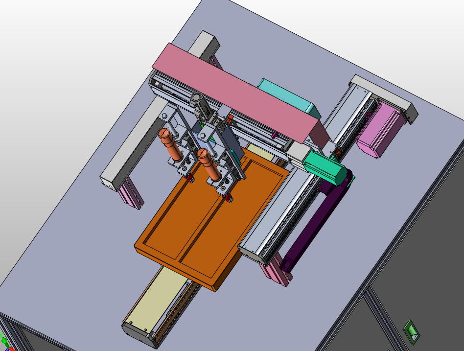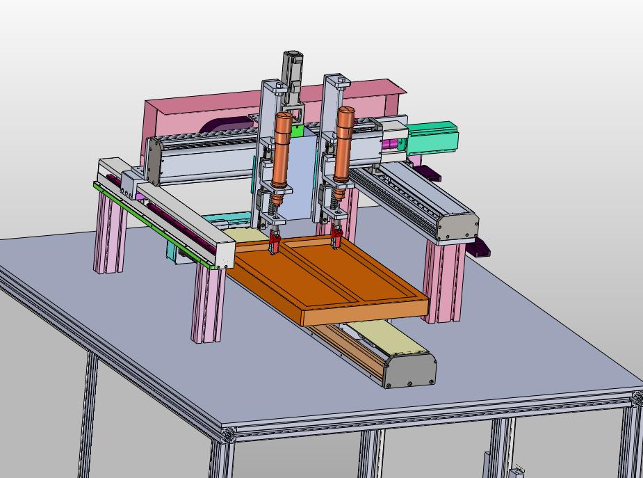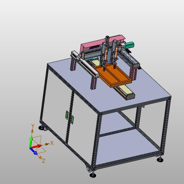 双轴双模螺栓锁付机:下部设置有产品的输入设备,通过上部的双轴进行横移,实现自动拧紧,参考价值非常高,可以修改,不含参数,图纸精细,结构新颖,欢迎下载。