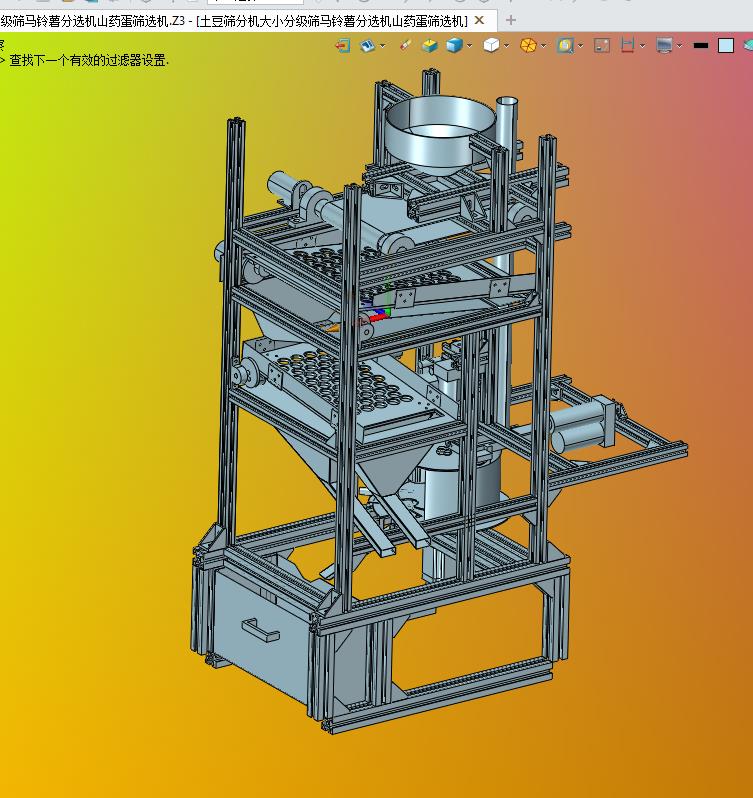 土豆筛分机大小分级筛马铃薯山药蛋筛选机:通过多的振动装置进行输送土豆,通过大小的过滤,细节已经做到位,可以修改,如果感兴趣,也可以作为参考学习使用。