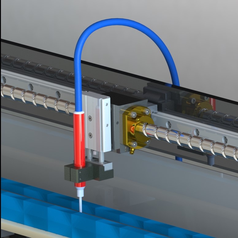 这是一款原创设计的气钻打孔机的3D模型图纸,这款图纸已经用于批量生产了,这款设备具有快速钻孔,提高了实际生产效率。设备是由钻孔排钻、裁断刀片、滑轨传动机构和产品夹紧组成的,使用很方便的。目前用于汽车密封条钻孔,图纸格式为solidworks2018,欢迎大家来下载。