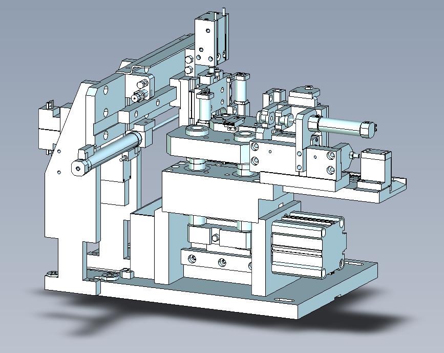 电路板凸轮气缸冲切机抓手:采用自动输送电路板,通过气缸进行顶升,实现自动冲压,细节已经做到位,可以修改,如果感兴趣,也可以作为参考学习使用。