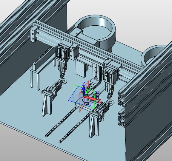 碟片堆垛装置:通过震动机构将碟片进行上料,采用机械手进行拿取,通过两个机械手进行旋转,然后将碟片进行堆垛,细节已经做到位,也可以作为参考学习使用。