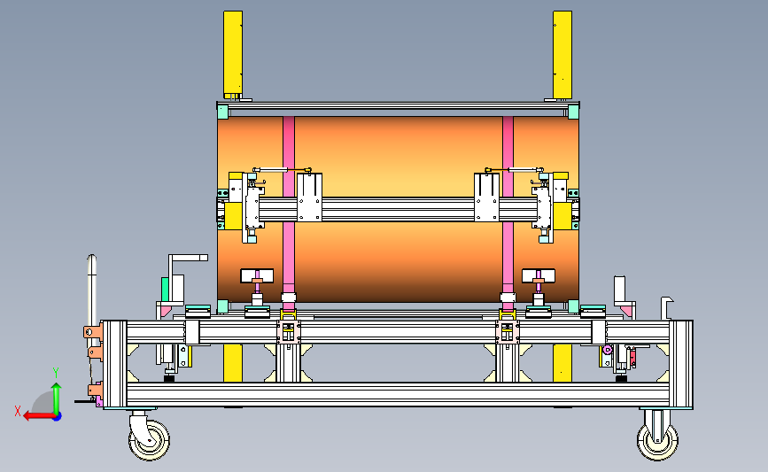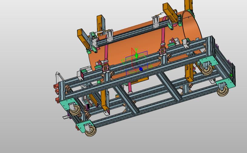 精密管道搬运小车:采用脚轮进行运输设计,通过多个定位工装进行定位锁定管道,用于焊接,中间格式建模数据更小,可以修改,欢迎各位机械朋友的下载和使用。