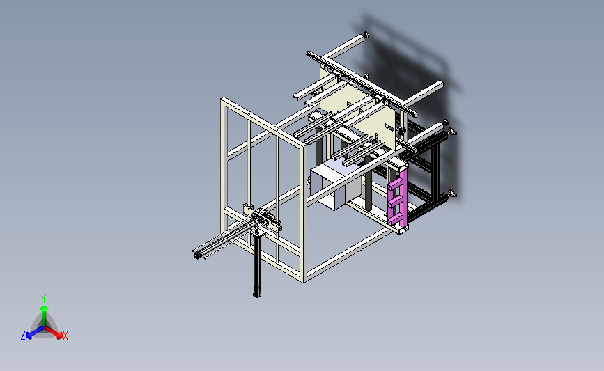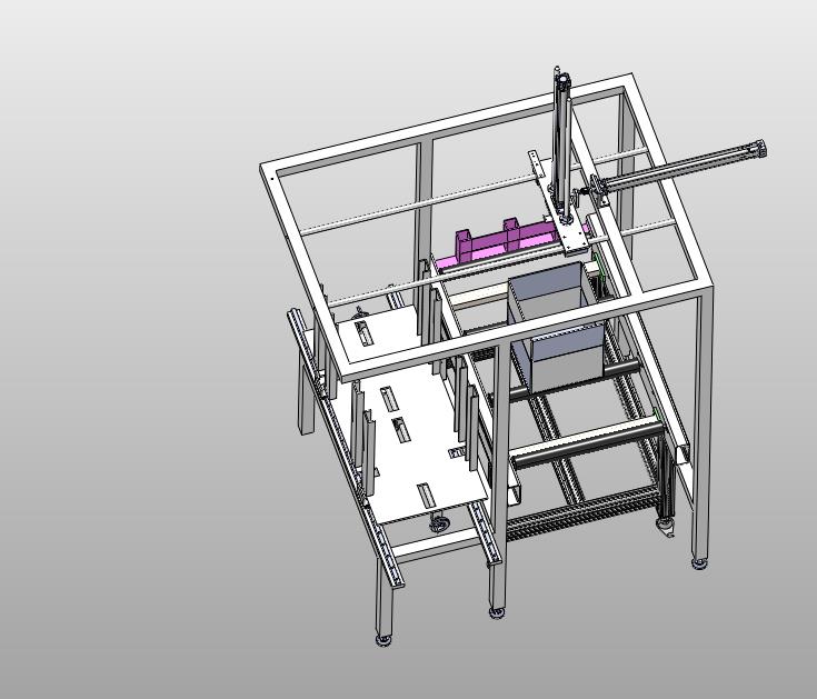 泡沫纸隔板搬运入箱机械手:海绵隔板采用堆垛进行上线,采用上部机械手进行放入箱体,中间格式建模数据更小,可以修改,欢迎各位机械朋友的下载和使用。
