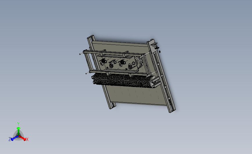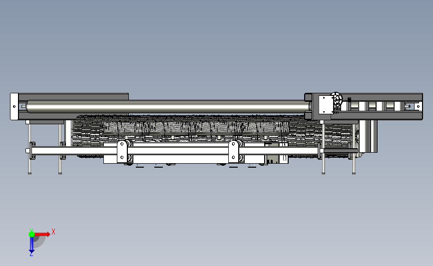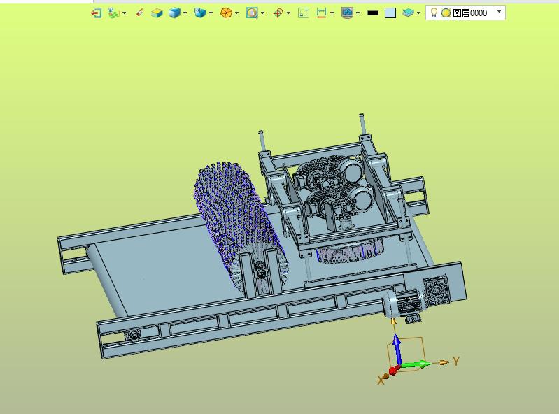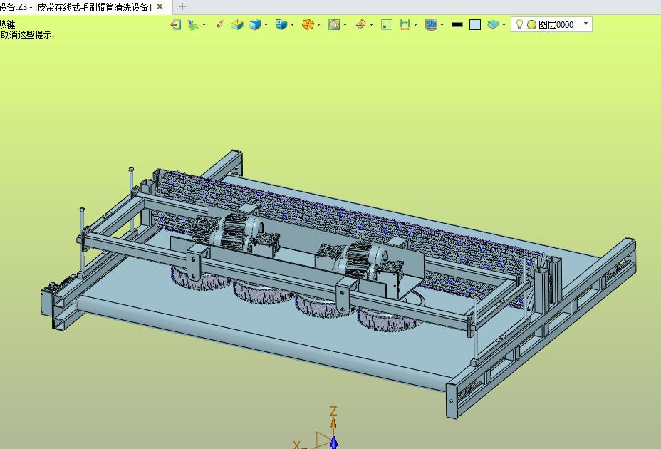 皮带在线式毛刷辊筒清洗设备:上部设置有电动辊筒合立式的旋转毛刷,实现清洁皮带,该模型创建效果逼真,中间格式数模文档保存,不含参数,可以修改。