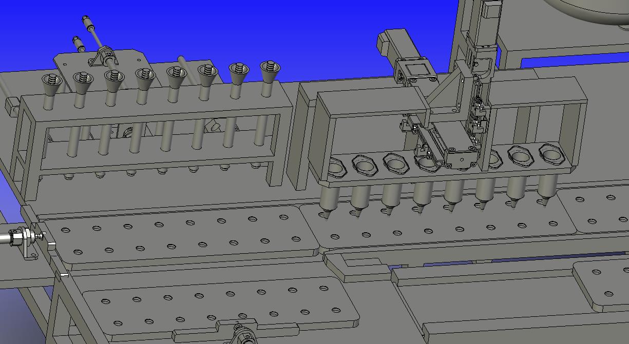 旗子底座涂胶自动装配上盖产线:采用机械手进行自动拿取,进行底座的涂胶,进行装配上盖,图纸细节比较多,结构新颖,可以用来修改,可以作为机械设计学员参考使用。
