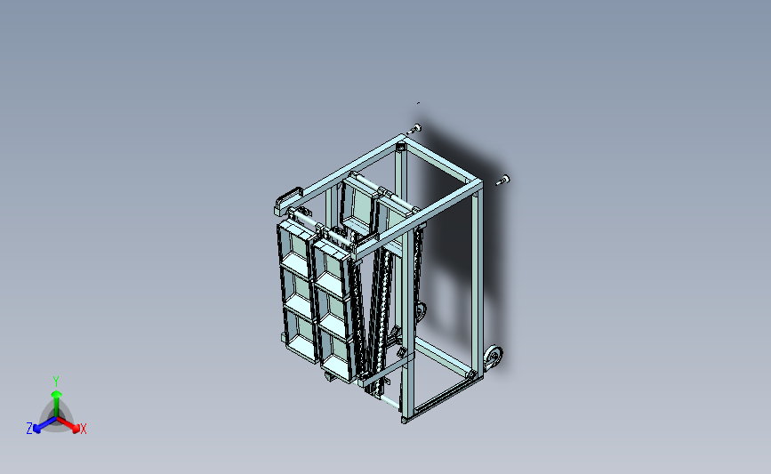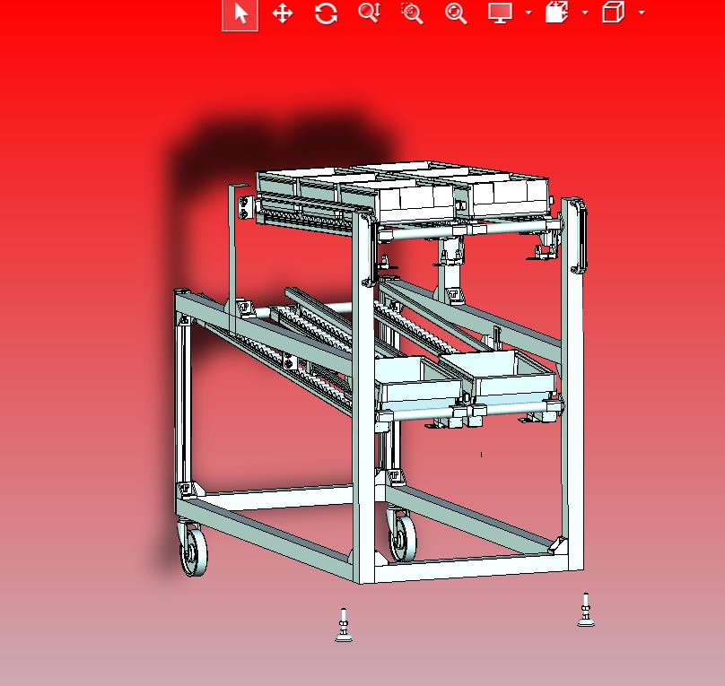 推车式物料塑料盒流利小车:采用小推车进行上料,通过上部的流利料架进行放置盒子,结构已经尽量细化,其形态优美曲线流畅,有用到的朋友欢迎下载。谢谢。