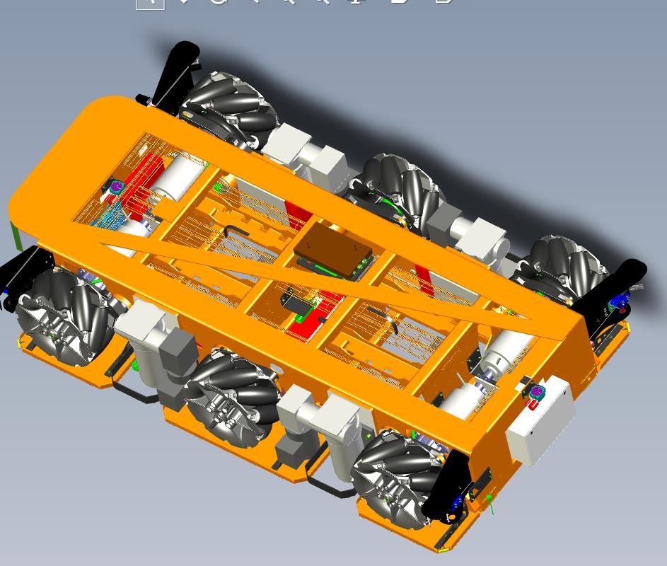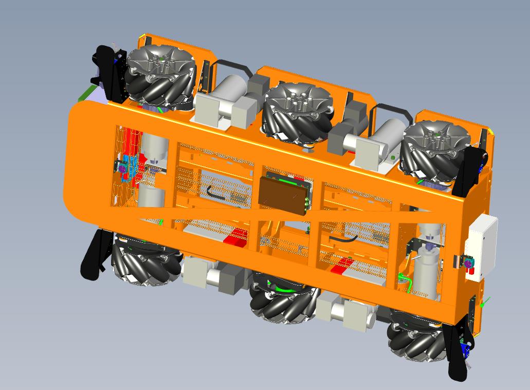 重型万向移动智能小车AGV:采用多个驱动的电机进行驱动脚轮,采用万向脚轮进行移栽驱动,细节已经做到位,可以修改,如果感兴趣,也可以作为参考学习使用。