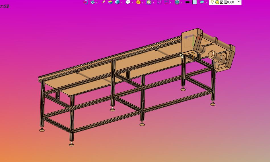自动化流水线传送带绿色皮食品级皮带:通过电机进行旋转,上部设置有铝型材作为框架,参考价值非常高,可以修改,不含参数,图纸精细,结构新颖,欢迎下载。