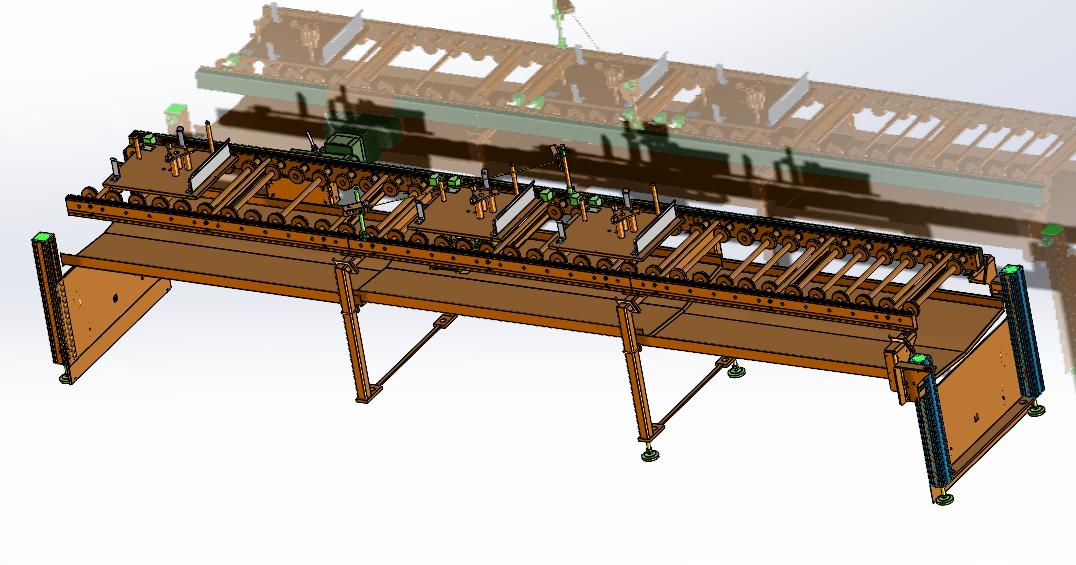 动力总成发动机托盘滚轮输送设备:放置在动力总成车间,用于精定位的托盘的输送,采用钢轮进行承载,内部结构明确,结构已细化,仅供下载学习参考使用!可以下载。