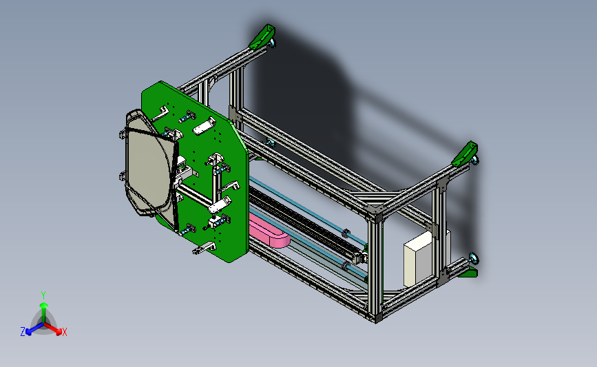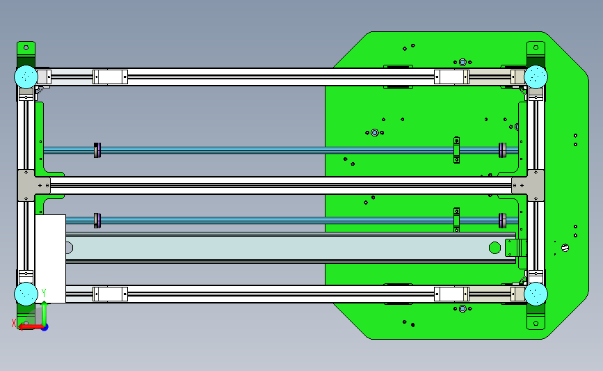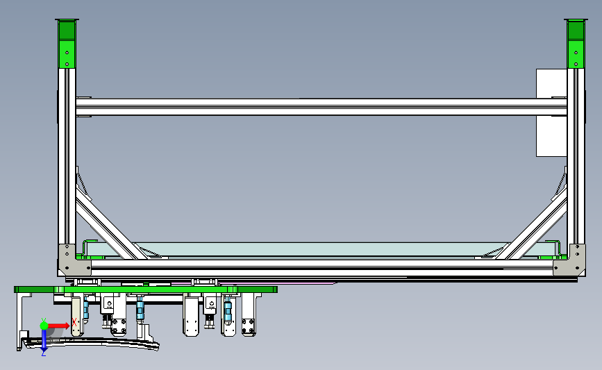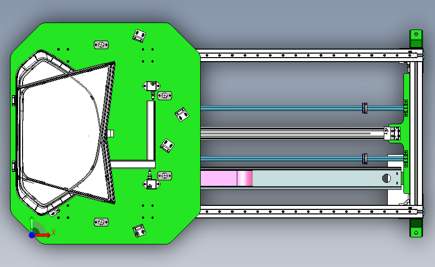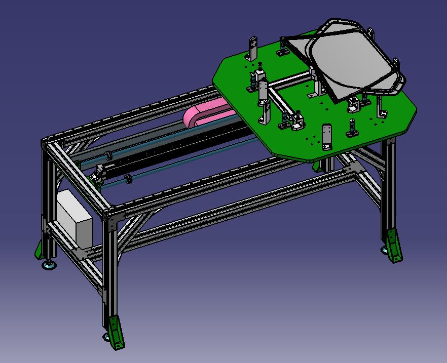 小玻璃三角窗侧窗横移台:上方放置有定位玻璃的工装,通过调整工装,可以实现多种玻璃的放置,下方采用横移平台,机械工程师可以做个参考