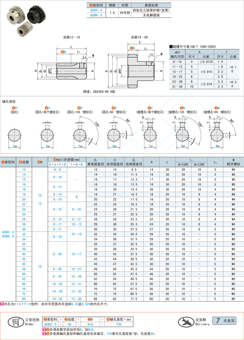 凸肩型直齿轮-模数1.0@GEBS1.0 GEBN1.0(ID:459400)