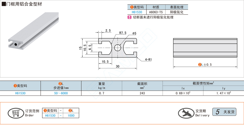 门框用铝合金型材@H61530(ID:459741)