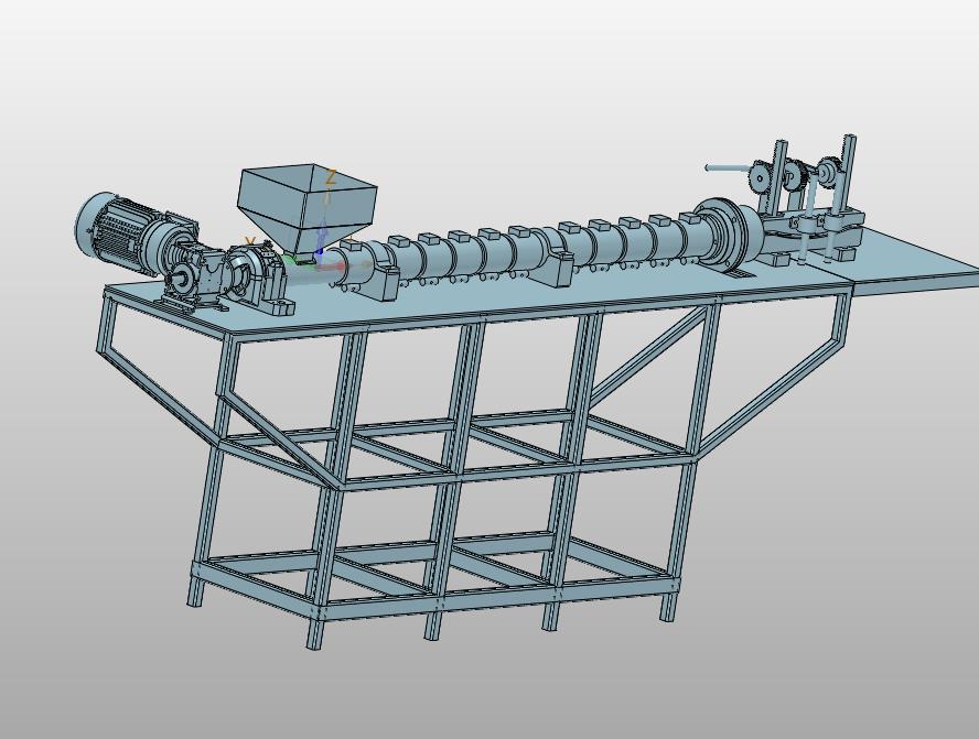 PVC小型PC单螺杆塑料挤出机PP挤塑机:采用电机旋转螺杆,通过加热实现融化,实现挤出,图形结构内容表达良好,可以用来修改,结构新颖,欢迎各位机械朋友的下载和使用。
