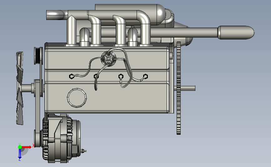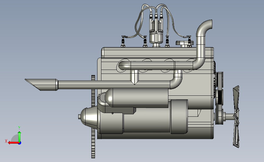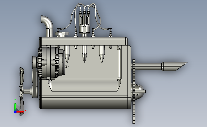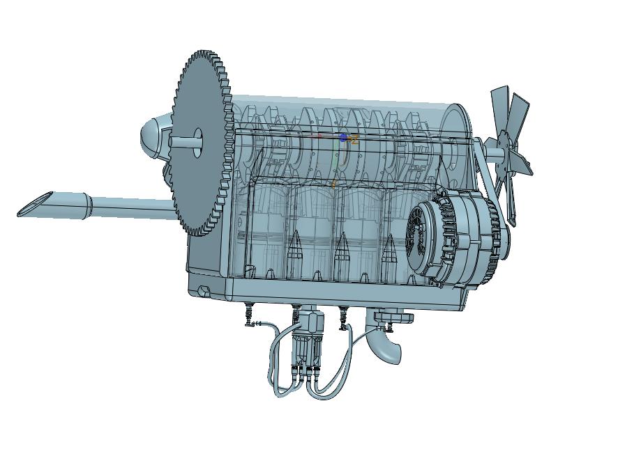 四缸船用柴油机引擎:采用四个驱动轴进行驱动曲轴,实现扇叶的旋转,进行驱动船身,细节已经做到位,可以修改,如果感兴趣可以下载使用,也可以作为参考学习使用。