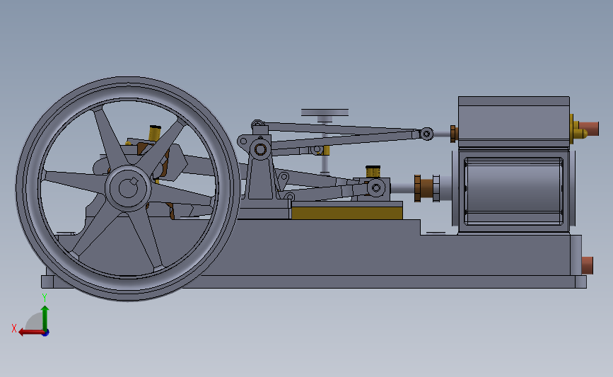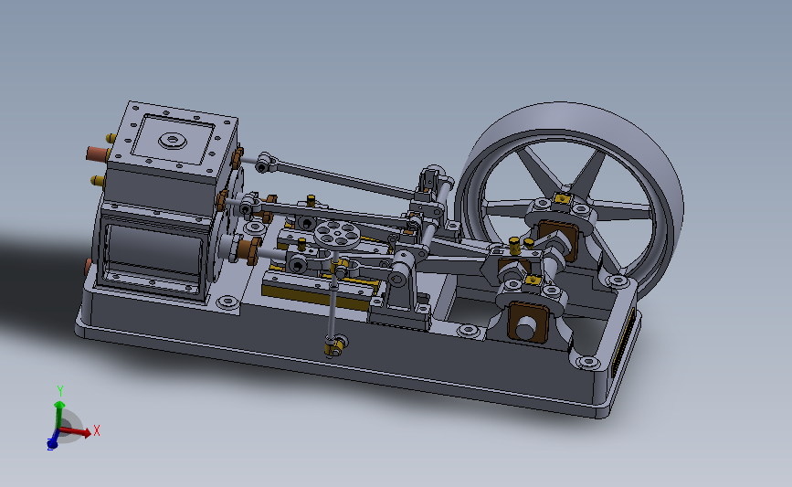 2缸卧式蒸汽机3D数模图纸 Solidworks设计(ID:494192)